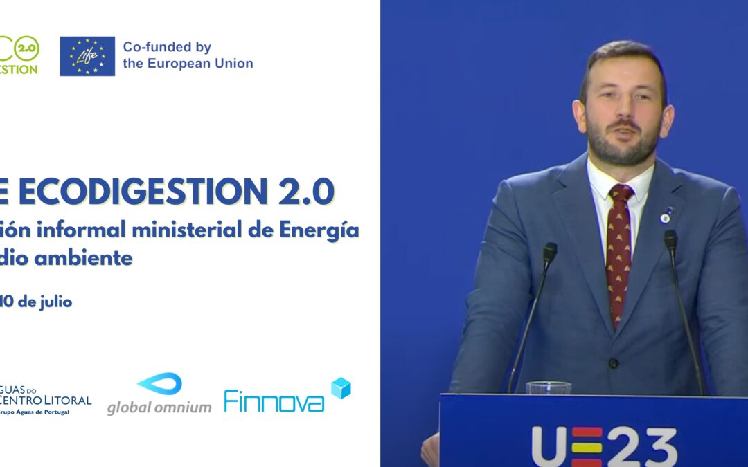 11/07/2023, Bruselas. Ayer, lunes 10 de julio a las 10:00 (CEST) se ha celebrado la primera jornada de la reunión informal ministerial de Medio Ambiente y Energía de la UE en Valladolid. Uno de los temas que se ha tratado en esta reunión ha sido la mejora de la gestión del agua con el avance en la depuración de las aguas residuales, objetivo del proyecto europeo LIFE ECODIGESTION 2.0, en el que colabora Finnova.
